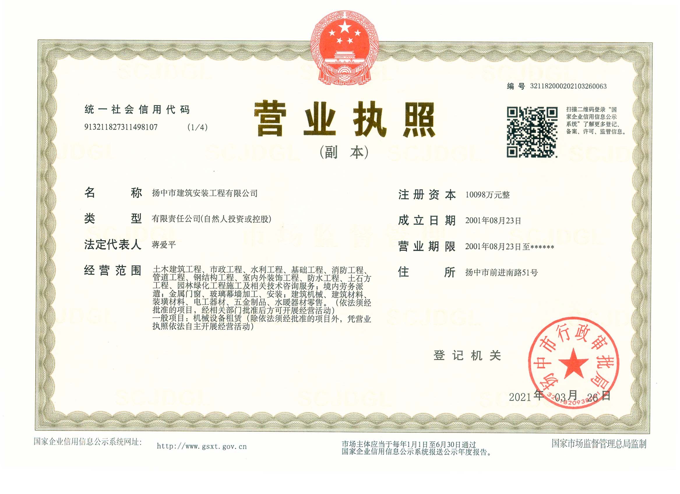 揚(yáng)中市建筑安裝工程有限公司是房屋建筑工程施工總承包國家一級(jí)和市政公用工程施工總承包國家一級(jí)資質(zhì)施工企業(yè),并具有地基基礎(chǔ)工程專業(yè)承包、起重設(shè)備安裝工程專業(yè)承包、建筑裝修裝飾工程專業(yè)承包、消防設(shè)施工程專業(yè)承包、建筑機(jī)電安裝工程專業(yè)承包、鋼結(jié)構(gòu)工程專業(yè)承包等資質(zhì),在上海、南京、鎮(zhèn)江、蘇州、常州、沭陽、蕪湖、湖北襄陽等地設(shè)有分公司。60多年來,公司承建了一大批工業(yè)與民用建筑,為地方經(jīng)濟(jì)和...